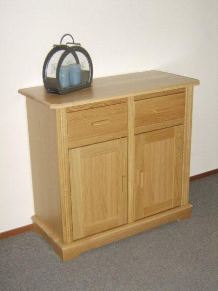 Eiken Dressoir, voor kleine kamers. Een kast met een royale opbergruimte achter de deuren met 2 lades op praktische hoogte. Deze kast is in vele CBM kleuren te leveren. Levertijd is plm 3 tot 4 weken. Eigenschappen
